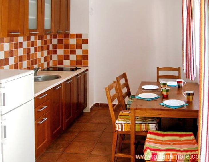 Квартиры (студии) 28 м2, две на первом этаже, первый и второй этаж. Они отличаются только цветами, преобладающими в их интерьере (зеленый, желтый и оранжевый).Они включают в себя спальню, оборудованную ЖК-телевизором с кабельным подключением, кондиционером, двуспальной кроватью и дополнительной кроватью (диван-кровать Simco), затем оборудованную мини-кухню. с посудой, отдельная терраса и, конечно же, отдельная ванная комната.