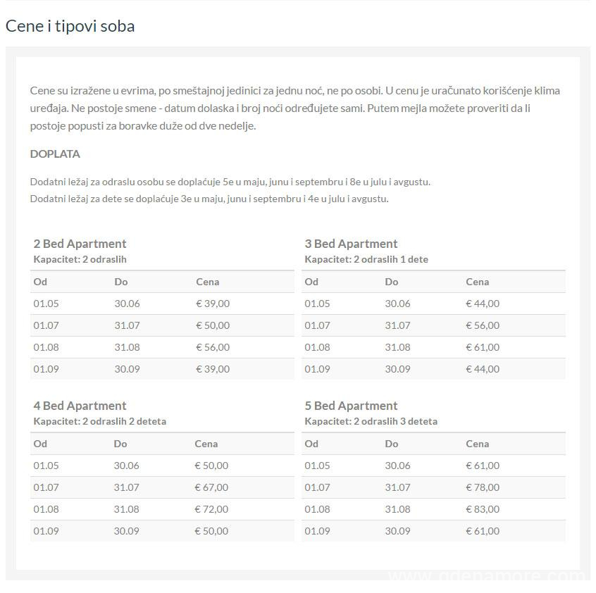 Cene smeštaja: