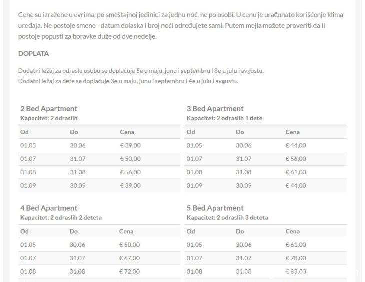 Wir betonen noch einmal, dass in allen unseren Apartments und Studios die Nutzung von Internet und Klimaanlage, sowie Satellitenfernsehen (mit serbischem RTS) im Preis inbegriffen ist.
