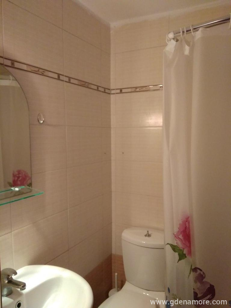Das Studio liegt im Souterrain (sieben Stufen unter Straßenniveau), ist aber dank normalgroßer Fenster und Balkontüren hell und freundlich. Es bietet Platz für bis zu vier Erwachsene. Im abgetrennten Bereich befindet sich ein Doppelbett, außerdem gibt es ein Schlafsofa mit Schublade. Die voll ausgestattete Küche verfügt über einen Herd, einen großen Kühlschrank mit Gefrierfach sowie alle notwendigen Utensilien und Geschirr. Das Badezimmer ist mit einer Dusche mit Duschvorhang ausgestattet. WLAN, Fernseher, Klimaanlage sowie frische Bettwäsche und Handtücher stehen den Gästen zur Verfügung.