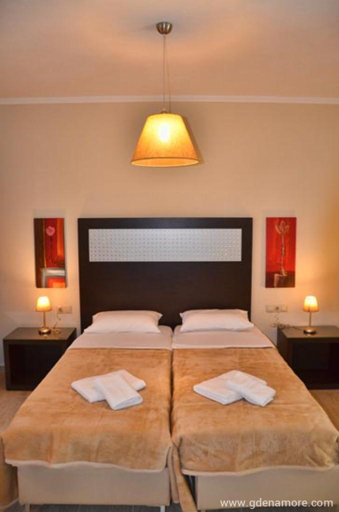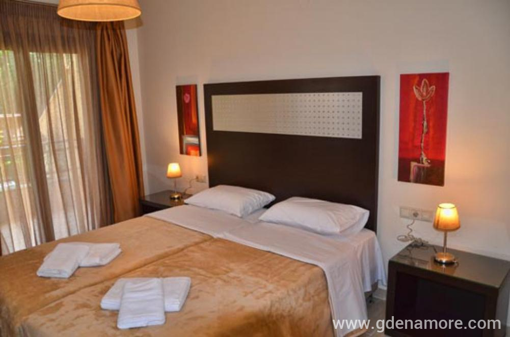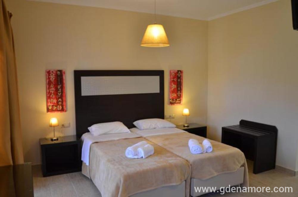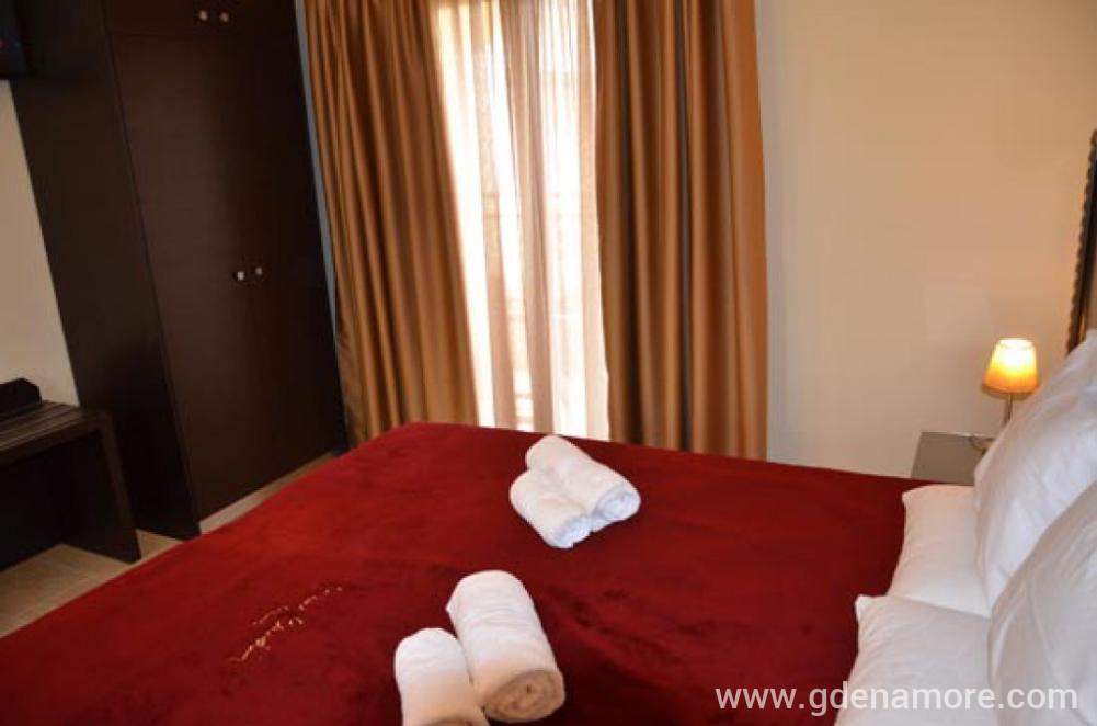 Die Villa verfügt über insgesamt 9 Zwei-Zimmer-Studios, in denen bei Bedarf ein Zustellbett für ein Kind hinzugefügt werden kann. Die Studios sind sehr schön und modern eingerichtet, mit hochwertigen und neuen Möbeln. Alle verfügen über Küche, Badezimmer, Safe, WLAN-Signal, Klimaanlage, TV und schöne Terrassen.