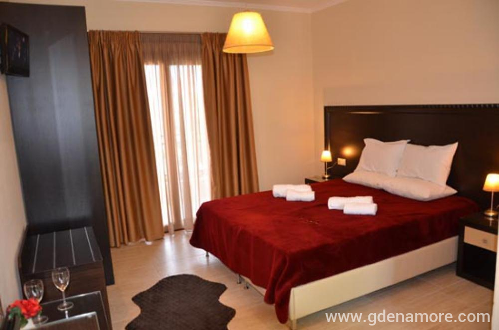 Wenn Sie von der Fähre aussteigen, folgen Sie der Richtung nach rechts und fahren Sie entlang der Hauptstraße am Meer entlang (ca. 300 m), dann erreichen Sie den Teil, an dem die schmale Straße direkt zum Hotel Vournelis und zum gleichnamigen Strand führt. und Sie folgen der Hauptstraße und biegen links ab bis zur ersten großen Kreuzung (mit der Dimitriadou-Straße) und biegen links ab, und dann erreichen Sie nach 200 Metern die Villa Pipini, die sich auf der linken Straßenseite befindet.