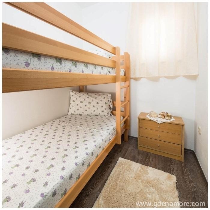 Apartment mit einen Schlafzimmer (35 m²) - A3 (max. 3 Personen) - Erster Stock - 28 m² + Balkon von 7 m², der sich entlang der Ostseite des Hauses erstreckt - 1 Küche / Esszimmer - 1 Schlafzimmer mit Doppelbett und zusätzlich ein Einzelbett - 1 Badezimmer mit Dusche und WC - Balkon mit Meeresblick Ausstattung: Klimaanlage (Kühlung, Heizung), SAT-TV, Wi-Fi Internet, Elektroherd, Kühlschrank mit Gefrierfach, Wasserkocher, Kaffeemaschine (auf Anfrage), komplette Küchenutensilien