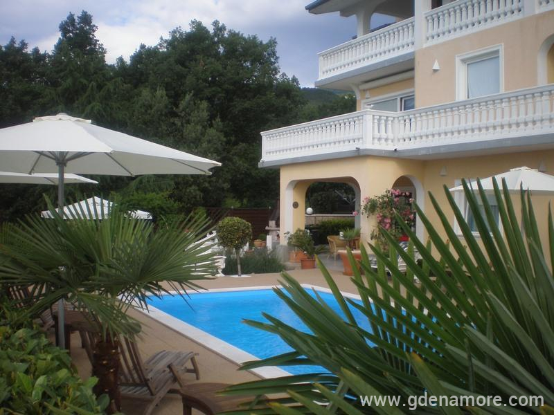Die Villa Chiara befindet sich in einem kleinen Dorf Ičići (Opatija) in ruhiger Lage, umgeben von viel Grün mit einer großen Terrasse, die einen wunderschönen Blick auf das Meer und die gesamte Kvarner Bucht bietet. Im Garten gibt es einen Swimmingpool mit Liegestühlen und Sonnenschirmen, Sommerhaus, Gartengrill, Tischtennis. Jeder Gast hat einen gesicherten Parkplatz. Die Villa Chiara ist ein idealer Ort für Familien mit Kindern oder für Paare, die sich entspannen und entspannen möchten. Mögliche Touristenunterkünfte, von denen aus Sie die umliegenden Strände und die noch unberührte Natur erkunden können.