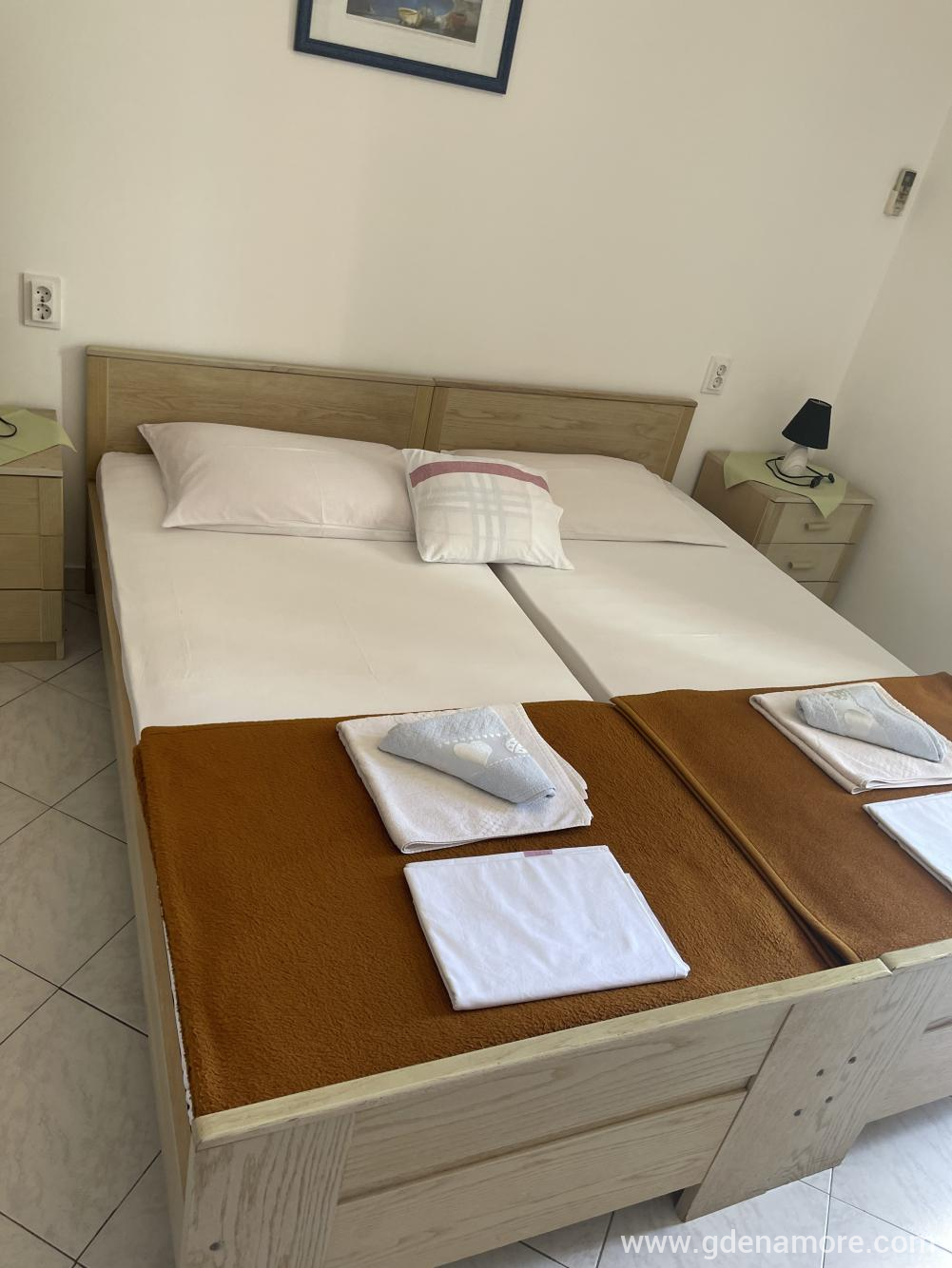 Das Zimmer befindet sich im ersten Stock. Blick nach Süden. Das Zimmer verfügt über ein Badezimmer, Haartrockner, Klimaanlage, Safe, Samowar für Tee oder Kaffee, Kabel-TV, Balkon. Es wird als Doppelzimmer mit einem oder zwei Zustellbetten vermietet.