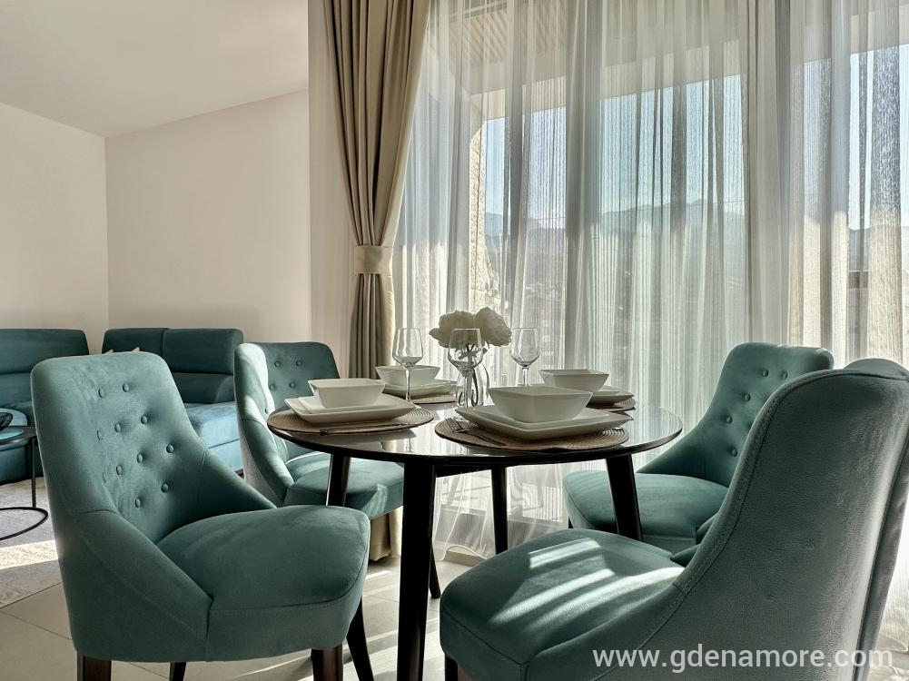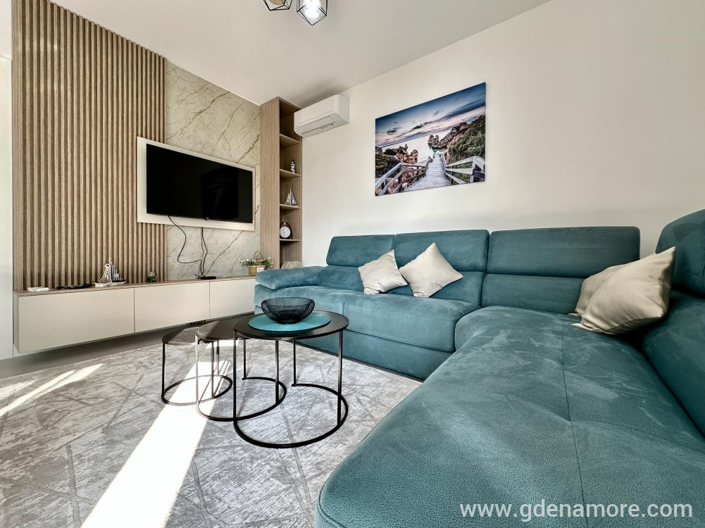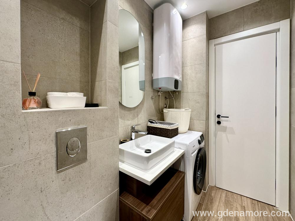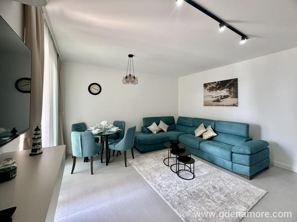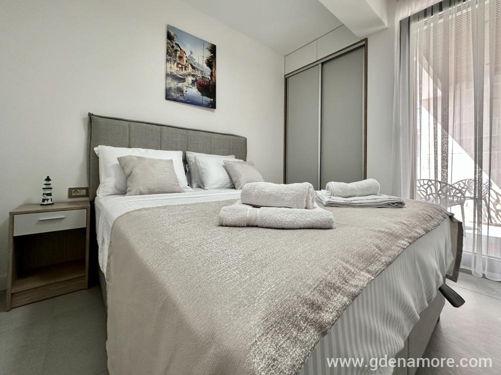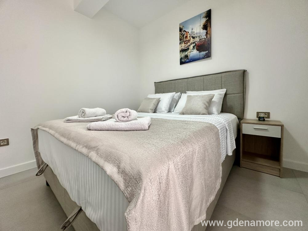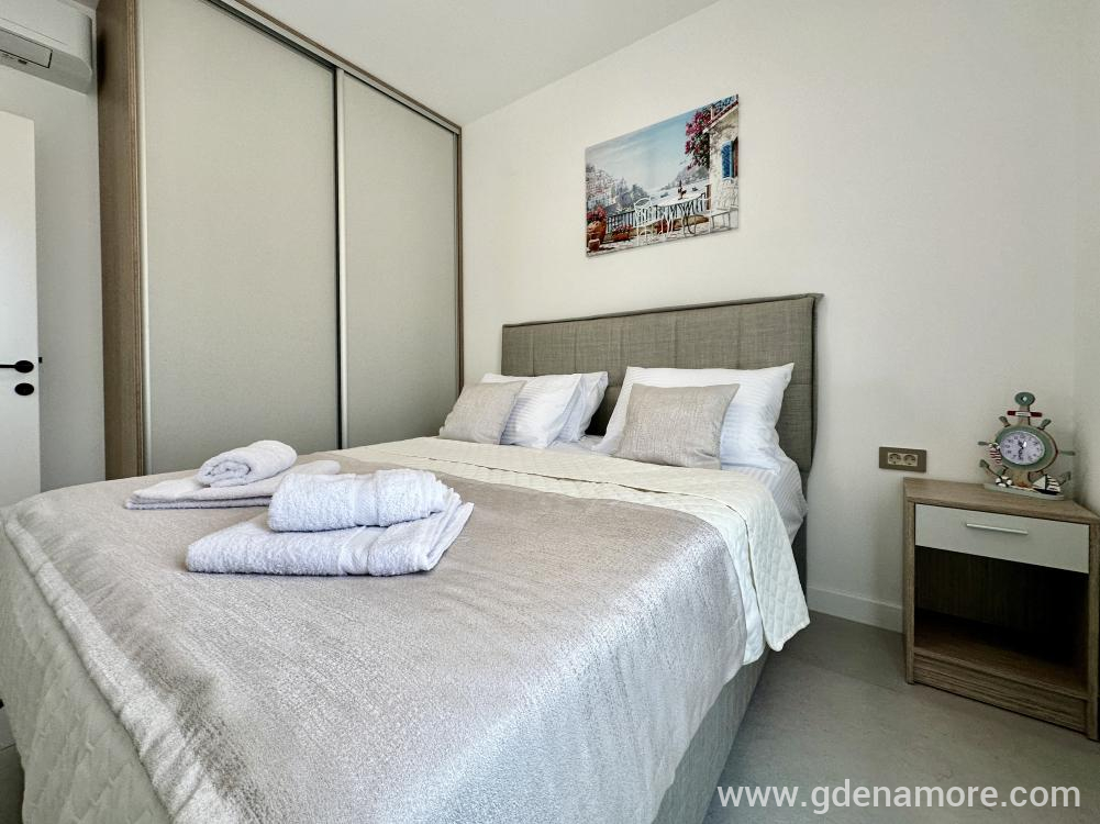 Zu vermieten ist eine luxuriöse, komfortable Einzimmerwohnung (42 m²) in einem Neubau mit Aufzug, nur wenige Schritte vom Strand entfernt. Die Wohnung befindet sich im zweiten Stock und verfügt über einen Balkon mit herrlichem Meerblick – ideal zum Entspannen und Erholen. Beschreibung: - Fläche: 42 m². - Ausstattung: Wohnzimmer mit Küche, Schlafzimmer, Bad, Balkon. - Etage: 2. Stock. - Gebäude mit Aufzug. - Modernes und helles Interieur. Alle notwendigen Annehmlichkeiten. Anfragen bitte per Viber oder WhatsApp an die Telefonnummer +38269446628 senden.