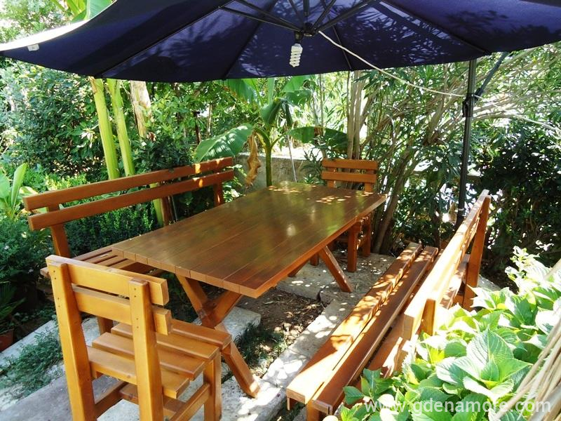 Die Wohneinheiten befinden sich in einer Entfernung von 10 m vom Meer, von der Wohnung aus gibt es einen Ausgang zum Hof, vor dem sich ein Betonsteg mit Liegestühlen befindet.