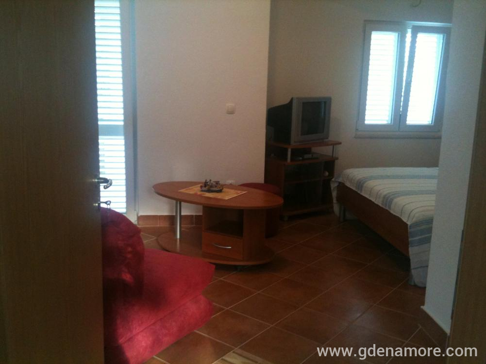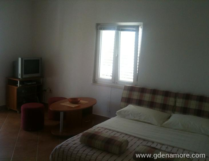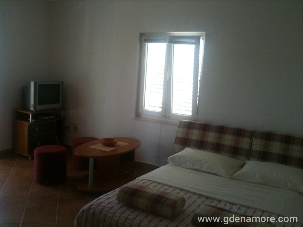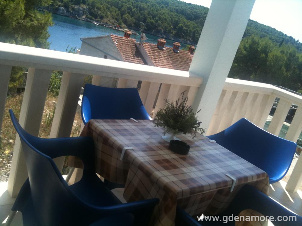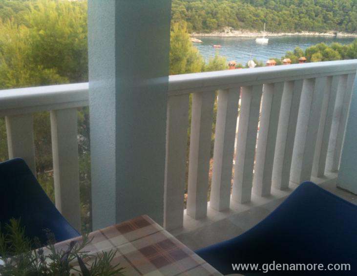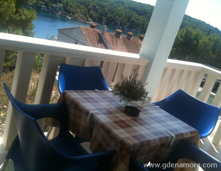 The apartments are located in the bay Osibova which is 2 kilometers away from the center of Milne. The house is at a distance of 30 m from the sea, access by car to the house with a large parking area and garage. The house consists of three floors, the status of the lease are 4 apartments situated on the second and third floor. Single apartments can accommodate a maximum of 4 people. In a very short distance from the house it is possible to swim at all sides of the bay, some of which are more appropriate for children. The nearest shop, restaurant, post office, bank about 2 km in Milna. Milna is situated 18 km from the ferry port in Supeta