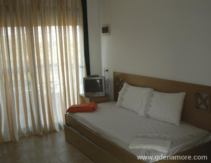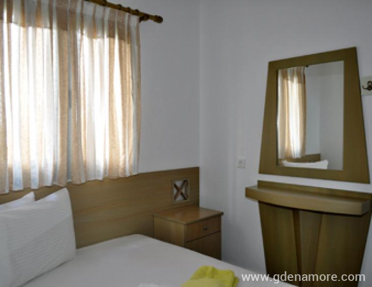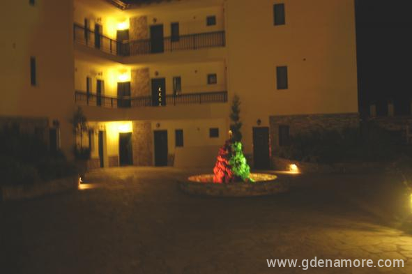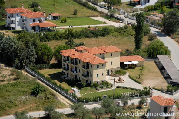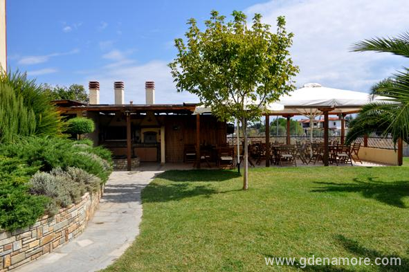 Maistrali apartments is a modern hotel,located at Ormos Panagias area at peninsula of Sithonia in Chalkidiki. It's rooms provide all comforts,so that you will have a pleasant and comfortable stay. Maistrali has 13 double rooms and 2 studios well constructed,with aircondition,TV,fridge, kitchen fully equipped, bath and balcony or terrace. The flowered garden,the kiosk with barbeque and the breakfast area, as well as the private parking,are only a few advantages of the hotel. You can swim in the famous Trani Ammouda beach, only 600 metres from the hotel, where you will enjoy the sun,the white sea waters, and the water sports. There is a daily cruise around Mount Athos sailing from Ormos Panagias...an unforgetable experience.