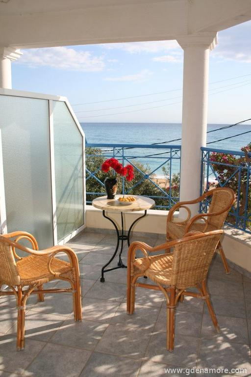 Maria Haus is located only 15 meters from Vrachos-Loutsa beach. We offer neat double rooms with a view of the sea or the courtyard. In addition to the excellent location, guests are provided with private parking and wireless internet.