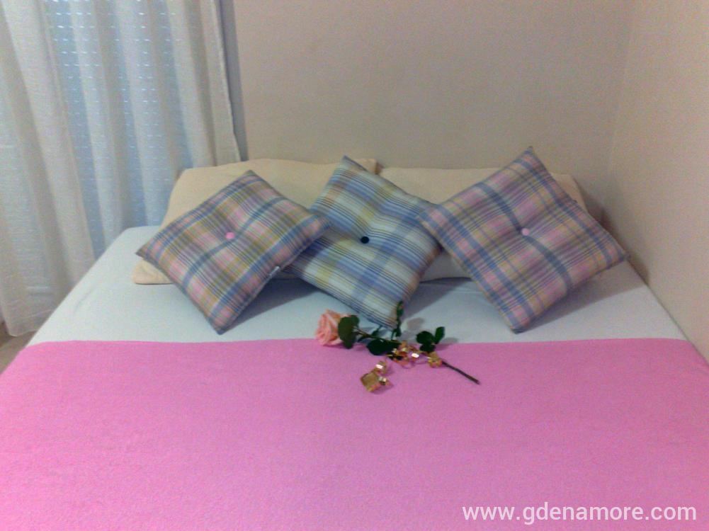 Studio može da ugosti od 1 do 3 osobe. Sadržaj: - 3 kreveta (1 ležaj samac, 1 bračni ležaj) - garderober - TV - klima - trpezarijski deo - mini-kuhinja sa kuhinjskim priborom - kupatilo - balkon sa balkonskim namještajem
