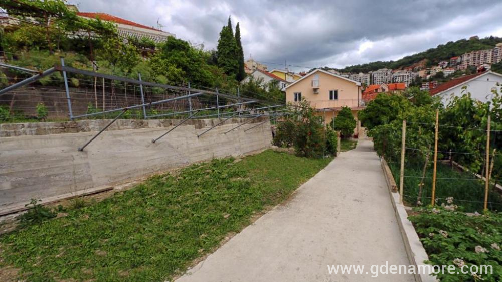 One-room apartment (up to 4 persons) is located on the 1st floor of the house "Pax Herceg Novi Apartments". The apartment is comfortably equipped and has a kitchen with a dining room. The area of the apartment is 60m2 + balcony 15m2 with a view of the garden and the sea. On this floor there is another identical apartment, next to this one. In front of the house there is a large yard, shared barbecue, terrace and garden. Next to the yard is a private parking lot that is fenced and free for guests of the apartment. Free WiFi internet is available throughout the building as well as in the yard.