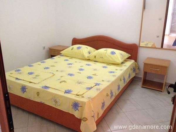 Dvokrevetna soba sa bracnim krevetom pored sopstvenog kupatila u sobi posjeduje i frizider. Ispred kuce ima basta gdje se nalaze sto sa stolicama gdje gosti mogu uzivati u pogledu na more