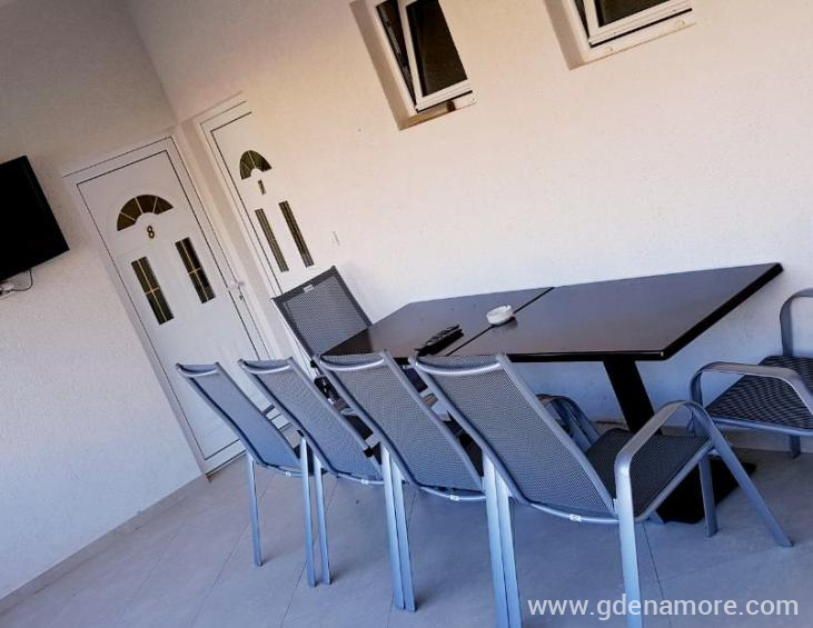 Disponemos de apartamentos dobles, triples, cuádruples y séxtuples con baño, cocina, frigorífico y terraza. Los apartamentos disponen de aire acondicionado con TV. y una terraza con vistas al mar. Los huéspedes del apartamento cuentan con estacionamiento. Distancia de la playa solo 50 m y de la tienda 20 m.