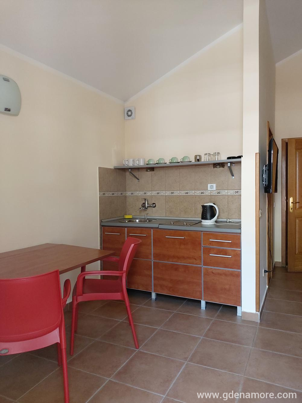 Studio à deux lits Appartement avec un lit supplémentaire pour un enfant. L'appartement dispose d'une kitchenette, réfrigérateur, écran LCD avec câble, internet. L'utilisation de la piscine est gratuite pour les clients, tout comme la mini salle de sport. Des prix Juin : 45 EUR la journée Juillet : 50 Eur la journée Août : 50eur jour Septembre : 45eur jour