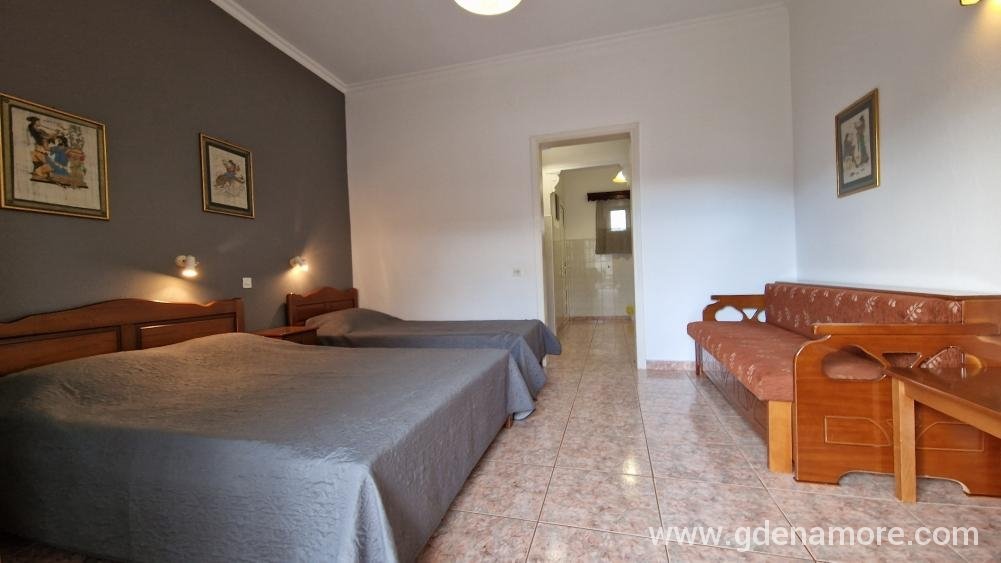 Σε κάθε διαμέρισμα και στούντιο υπάρχουν ένα διπλό και ένα μονό κρεβάτι και σε κάποια απο αυτά ένας ανοιγόμενος καναπές ή ένα έξτρα κρεβάτι, τηλεόραση επίπεδης οθόνης (32" στα διαμερίσματα ή 24"στα στούντιο), κλιματιστικό, σεσουάρ μαλλιών, κουζίνα με διπλό ηλεκτρικό μάτι, ψυγείο, κουζινικά σκεύη, ηλεκτρικό ταχυβραστήρα, μπάνιο με μπανιέρα ή ντούς, μπαλκόνι. Τα διαμερίσματα βρίσκονται στο ισόγειο και πρώτο όροφο και των δύο κτιρίων ενώ τα στούντιο στον δεύτερο όροφο του μεγάλου κτιρίου.