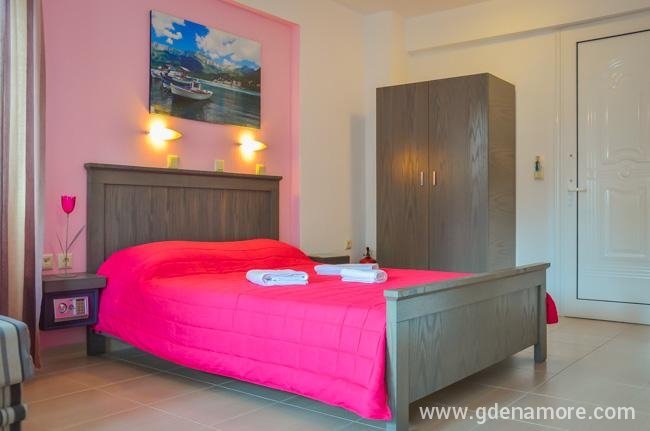 Όλα τα στούντιο είναι σχεδόν πανομοιότυπα, με διπλό κρεβάτι king-size και καναπέ-κρεβάτι και όλα έχουν ιδιωτικό μπαλκόνι και θέα στη θάλασσα.