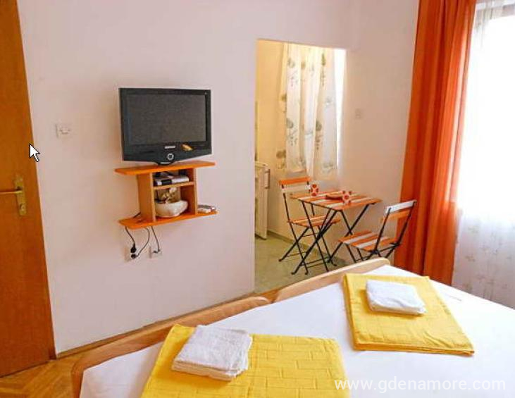 Διαμερίσματα (στούντιο) 28 m2, δύο στο ισόγειο, πρώτο και δεύτερο όροφο. Διαφέρουν μόνο στα χρώματα που κυριαρχούν στο εσωτερικό τους (πράσινο, κίτρινο και πορτοκαλί) Περιλαμβάνουν ένα υπνοδωμάτιο εξοπλισμένο με τηλεόραση LCD με καλωδιακή σύνδεση, κλιματισμό, διπλό κρεβάτι και επιπλέον κρεβάτι (καναπές κρεβάτι Simco) και στη συνέχεια μίνι κουζίνα εξοπλισμένη με σκεύη, ξεχωριστή βεράντα και φυσικά, ξεχωριστό μπάνιο.