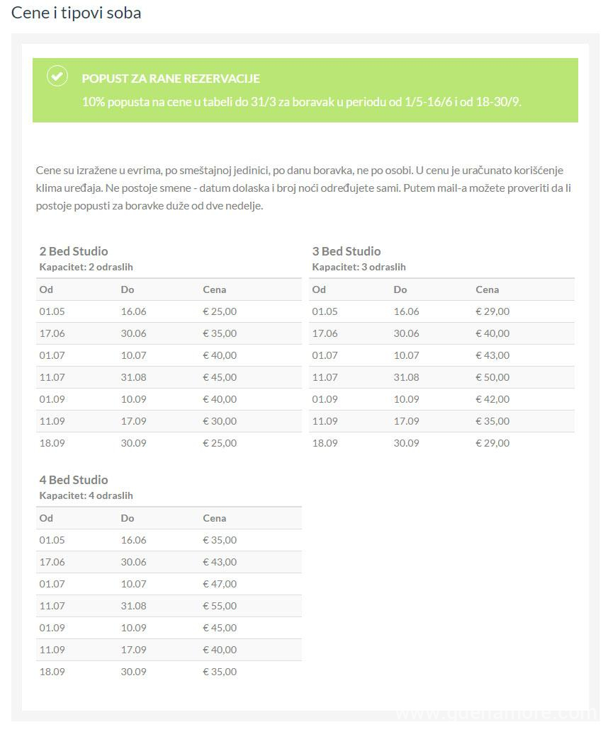 Cene smeštaja:
