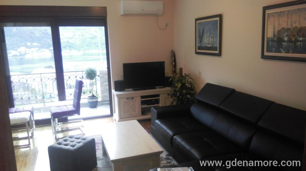 Appartamento / Appartamento "Stella di Cattaro" si trova a Kotor, Dobrota, a 300 m dal mare e 77 m2. L'appartamento è de lux ordinato, completamente climatizzato e contiene: cucina con tutti gli elettrodomestici necessari, ampio soggiorno (con TV completa, apparecchiature audio, video), due camere da letto, una delle quali ha un letto matrimoniale e le altre tre letti singoli ( opzionale 4tim) e un bagno dotato di una moderna cabina doccia con massaggiatori e tutti gli altri dispositivi che accompagnano in modo che l'ospite ha solo per portare effetti personali. L'appartamento ha una grande terrazza con splendida vista sul mare. La terrazza è attrezzata in modo da poter godere della vista mare e pranzare allo stesso tempo, mentre la sera è possibile utilizzare l'altra parte della terrazza attrezzata con mobili da giardino e godersi notti romantiche e la vista della baia.
