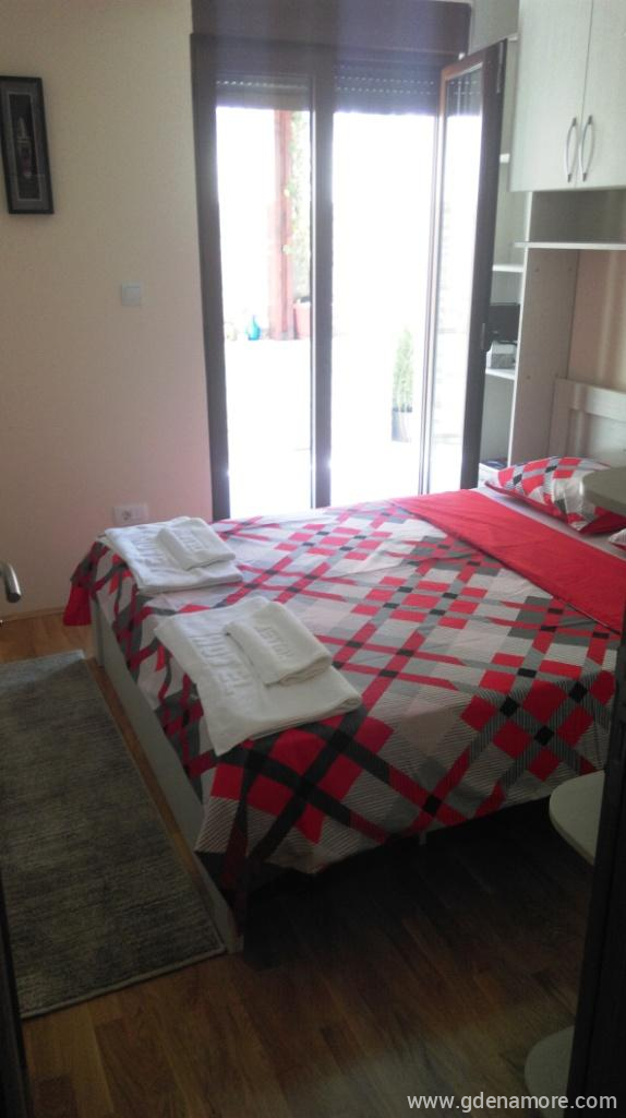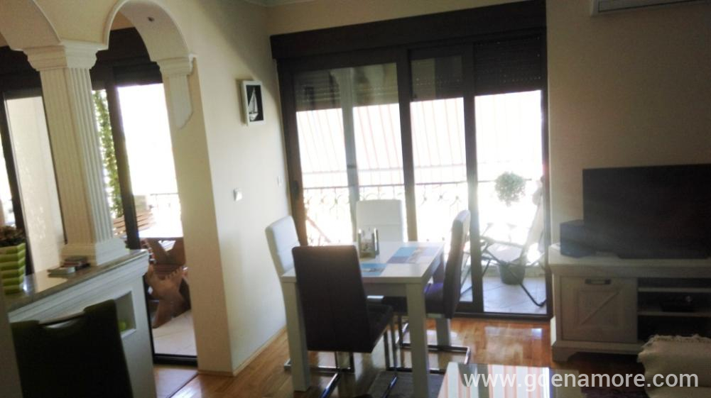 La distanza dal negozio è di 100 m, la prima spiaggia 300 m, il bar sulla spiaggia 350 m, il ristorante 100 m, la stazione degli autobus 100 m. Il centro storico di Kotor è raggiungibile in auto in pochi minuti oa piedi in circa 20 minuti a piedi dal mare (1,7 km). Gli animali non sono ammessi.