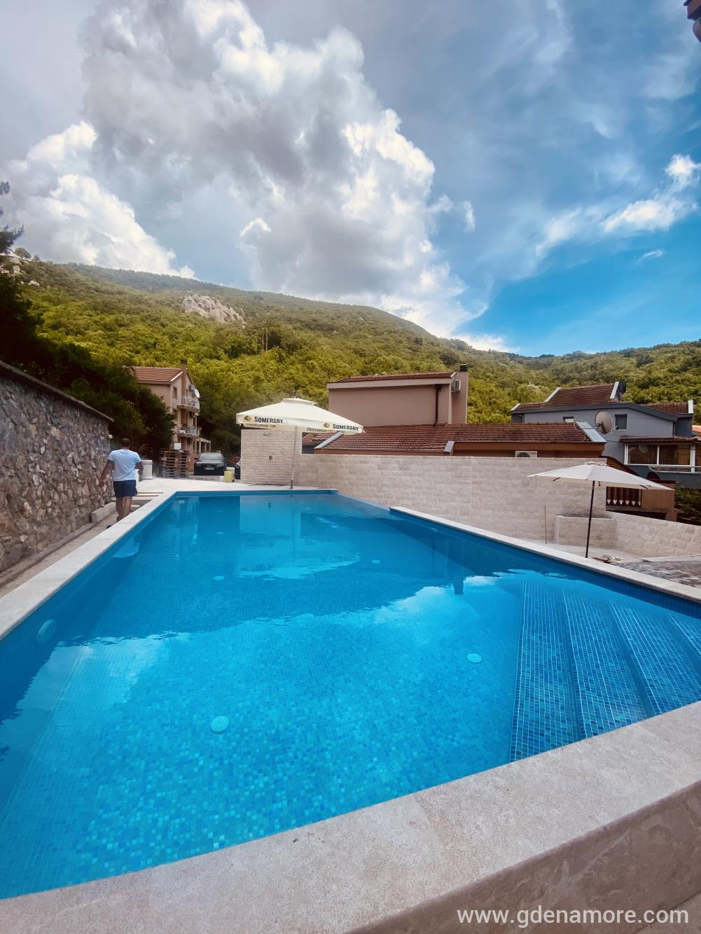 La capacità ricettiva dell'appartamento è di 3 + 1. Ha due terrazze, una cucina, un soggiorno e una camera da letto.