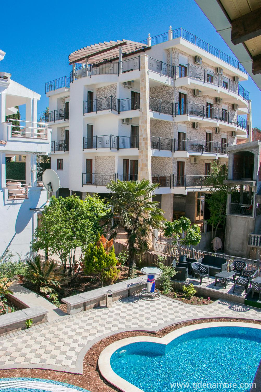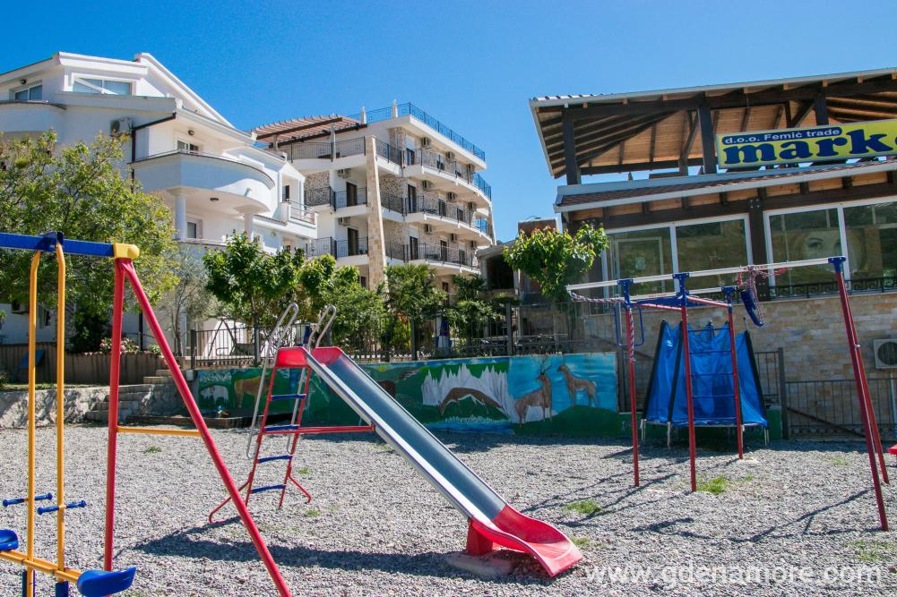 Hver leilighet har eget kjøkken. terrasse, bad, TV, internett, lekeplass og parkeringsplass.