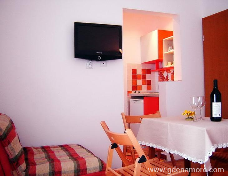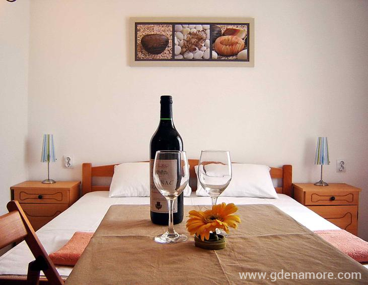 Leiligheter (studio) på 28 m2, to i første etasje, første og andre etasje. De skiller seg bare i fargene som dominerer i interiøret (grønn, gul og oransje). De inkluderer et soverom utstyrt med LCD-TV med kabeltilkobling, klimaanlegg, dobbeltseng og ekstra seng (Simco sovesofa), deretter et minikjøkken utstyrt med kjøkkenutstyr, en egen terrasse og selvfølgelig et separat bad.