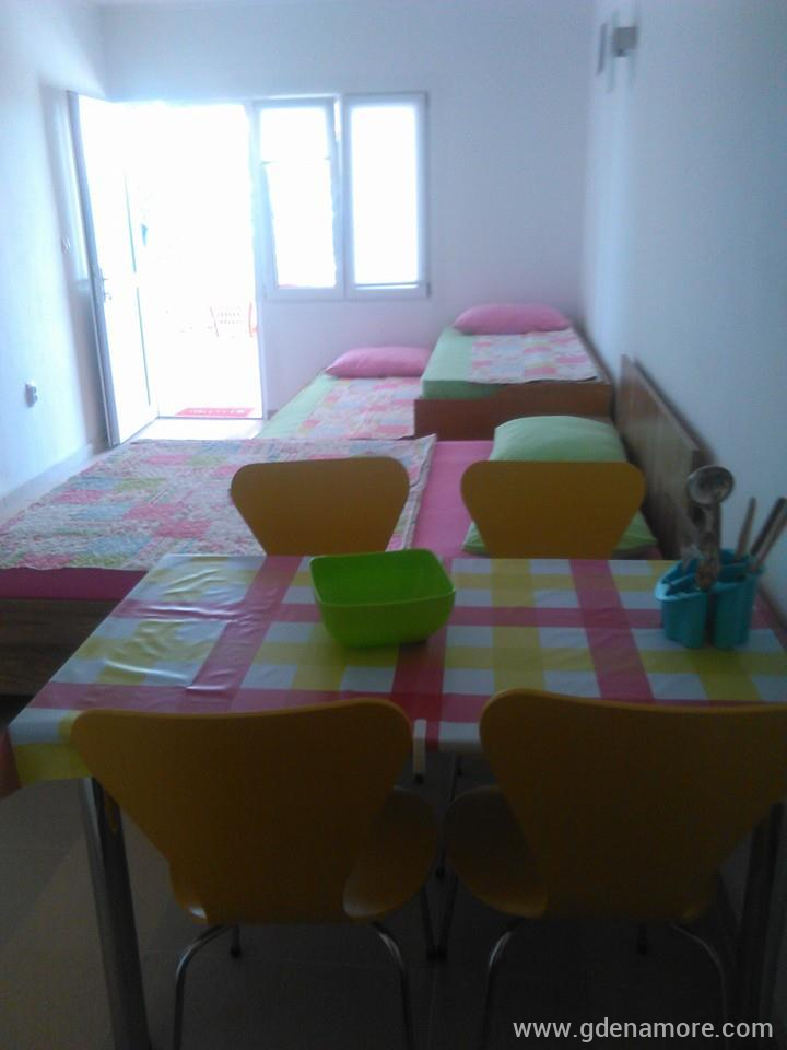 HOUSE LAV LEILIGHETER LIGGER KUN 250 m FRA BYSTRANDEN. Huset er omgitt av eiketrær og grønne hager, som konverterer en spesiell naturlig skygge, som omgir omgivelsene som omgir huset hjemme er solsenger med passende pizza, kaffe butikker, et bord bor i gjør dette huset enda mer behagelig. VI TILBYR FIRE HELT NYE LUX LEILIGHETER FOR FIRE PERSONER.HVER LEILIGHET HAR EN FRANSESENG + TO ENKELSENGER, ET KJØKKEN, ET BAD, ET SPISEBORD OG EN FELLES TERRASSE MED HAGE MED HAGE