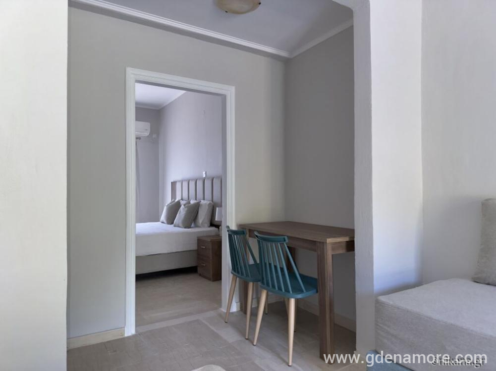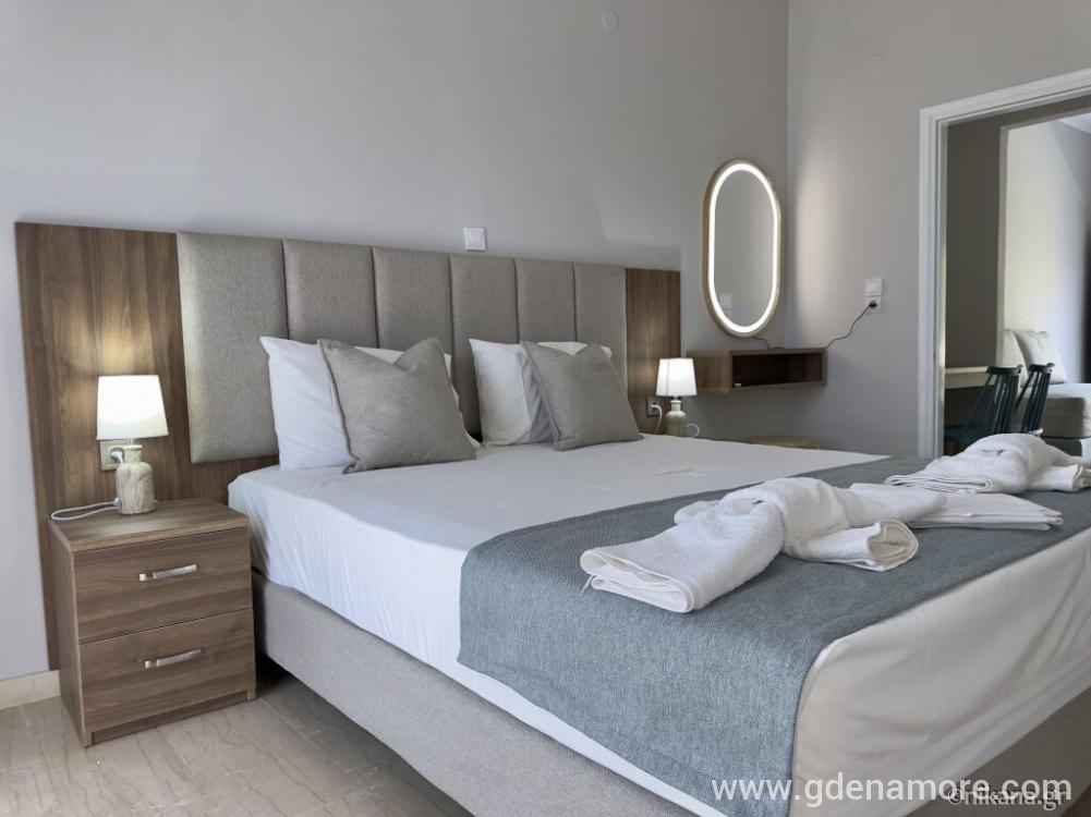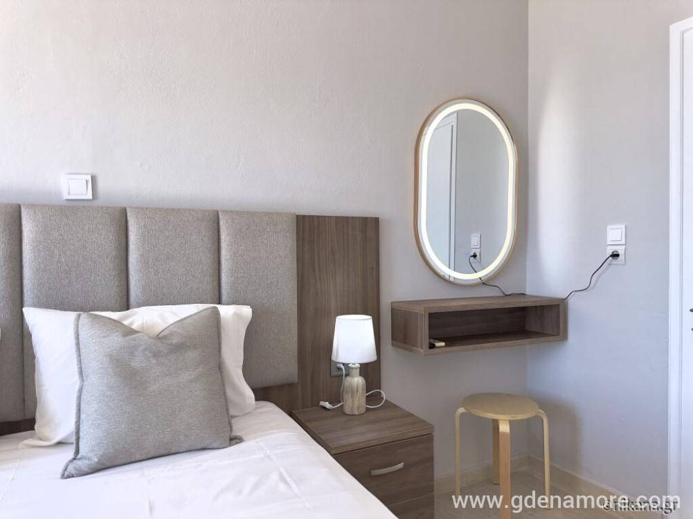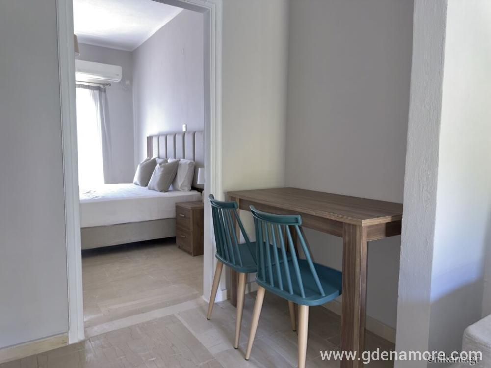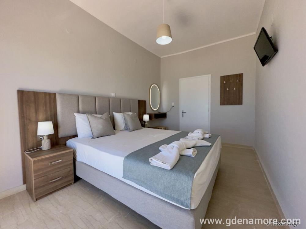 К услугам гостей доступ в Интернет, телевизор, кондиционер, полностью оборудованная кухня с двухконфорочной плитой и большим холодильником с морозильной камерой, а также балкон. Ванные комнаты оснащены феном и душем с занавеской. Четырехместные апартаменты имеют балкон с прямым видом на море, а трехместные — с частичным видом на море.