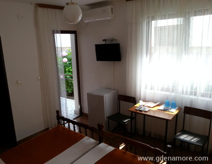 Sobe i apartman preko puta hotelskog naselja "Slovenska plaza", na 200 metara udaljeni od glavne plaze, 5 minuta laganim hodom, neposredno uz glavni bulevar, nude prijatan odmor u sklopu porodicne kuce. U mirnom dijelu, okruzeni zelenilom pruzice Vam prijatan boravak nakon vremena provedenog na plazi i mnogobrojnim drugim dnevnim i vecernjim zanimljivostima koje nudi grad Budva.