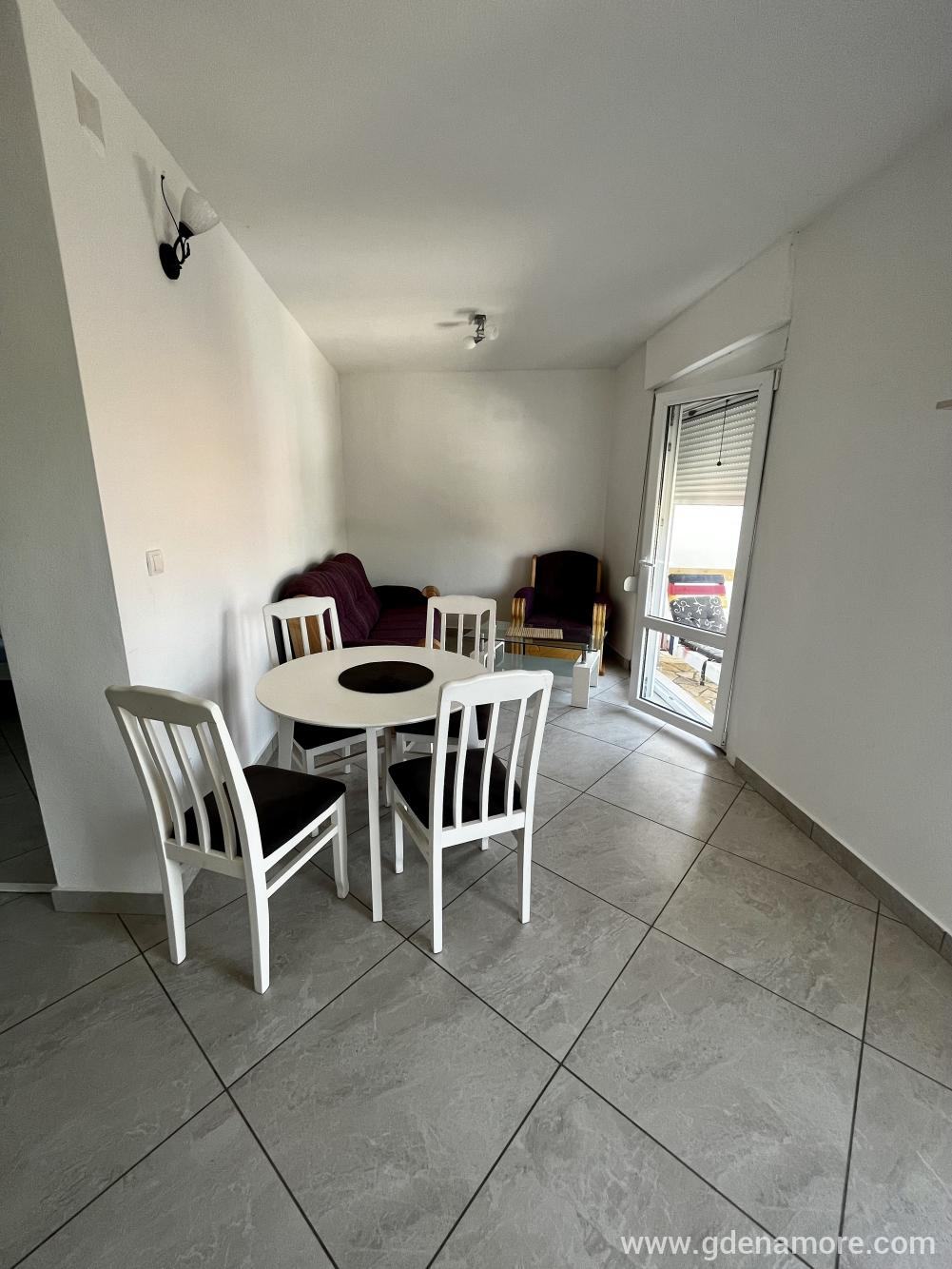 Apartman sa jednom spavacom sobom u kojoj se nalazi francuski lezaj, u dnevnoj sobi je trosed na razlacenje za dve osobe. Postoji mogucnost da se ubaci pomocni krevet u spacacu sobu po potrebi. Kuhinja, kupatilo, terasa.