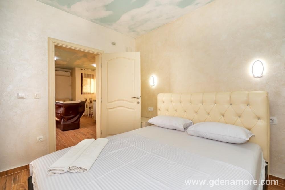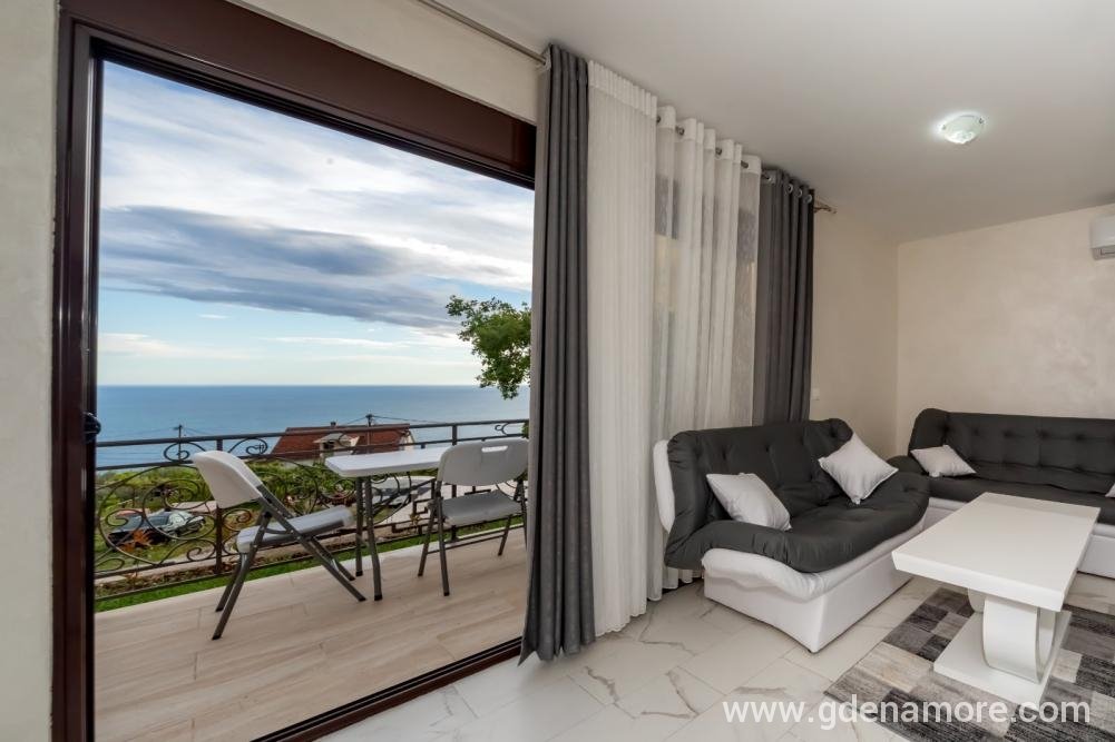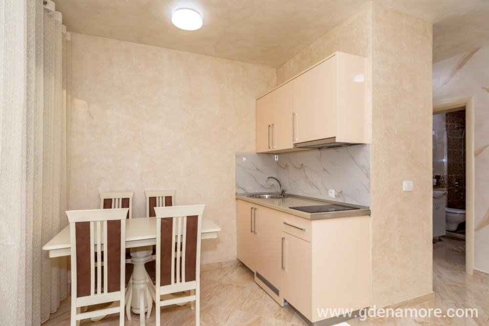Jednosobni stanovi koji se nalaze na predivnoj, mirnoj lokaciji 3km od mora (5 minuta voznje kolima) sa predivnim pogledom na more i na grad. Ako volite prirodu, mir i tišinu nasi stanovi su pun pogodak za vas. U blizini na 500m imate restorane i markete. Objekat je okruzen predivnim maslinama koje su stare 500 godina.