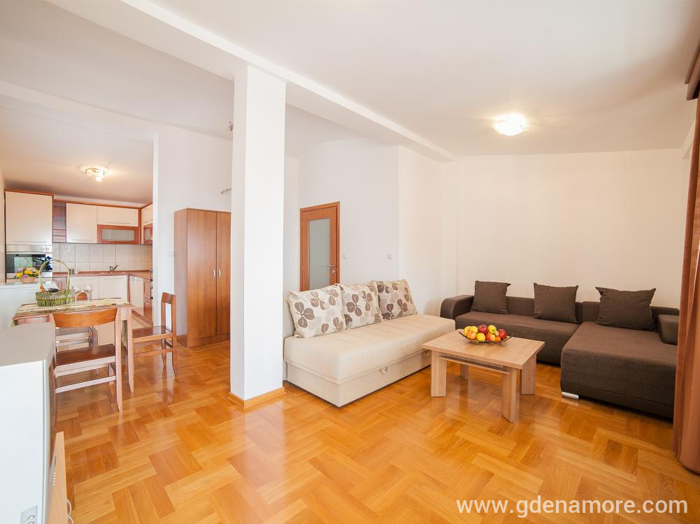 Apartman IVAN 9 sastoji se od dnevne sobe sa trosedom i ugaonom garniturom na razvlačenje,kuhinje sa trpezarijom,kupatila i terase.pogled na more.nalazi se na četvrtom spratu.