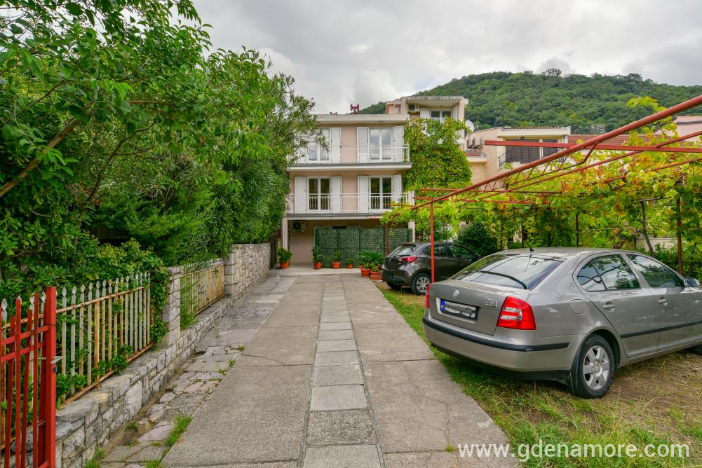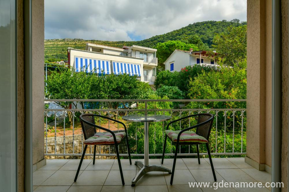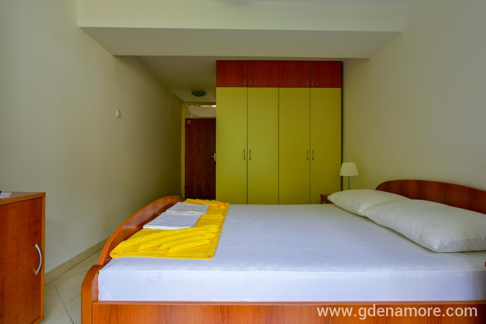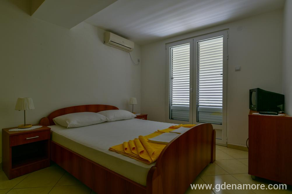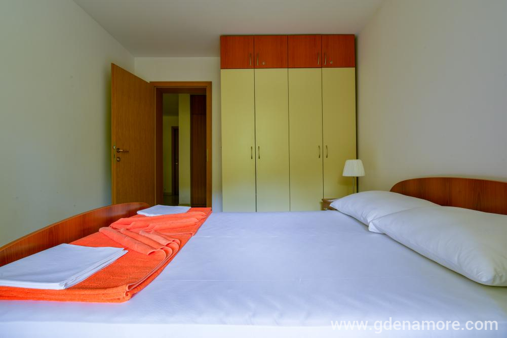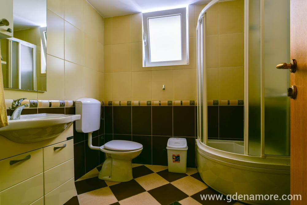 Poseduje odvojenu dvokrevetnu sobu i mogucnost korišćenja ležaja za dvoje u dnevnom boravku, kompletno opremljenu kuhinju, kupatilo, prostranu terasu, ,klima uredjaj, WI-FI,kablovska tv, parking u dvorištu kuće.