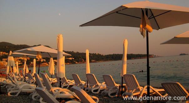 Gradska plaža u Sutomoru je jedna od 3 najveće pješčane plaže na Jadranu. Duga je oko 1,5 km, i u svakom trenutku može stati 10-ak hiljada ljudi. Veći dio plaže je zakupljen, cijene su od 5-10 eura za komplet u zavisnosti od perioda, a mobilijar je u većini slučajeva uskladjen sa ekologijom, napravljen od drveta i uklopljen sa prirodom. Ponuda na početku plaže je kompletirana sa velikim kafićm, dok se na drugom kraju može iznajmiti skuter ili voziti na popularnoj ’banani’. Nekoliko plažnih barova po sredini plaže rade do uveče, a postavljen je i teren za odbojku, odnosno teren za fudbal na vodi.