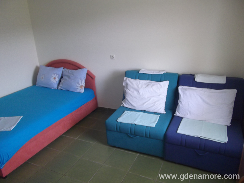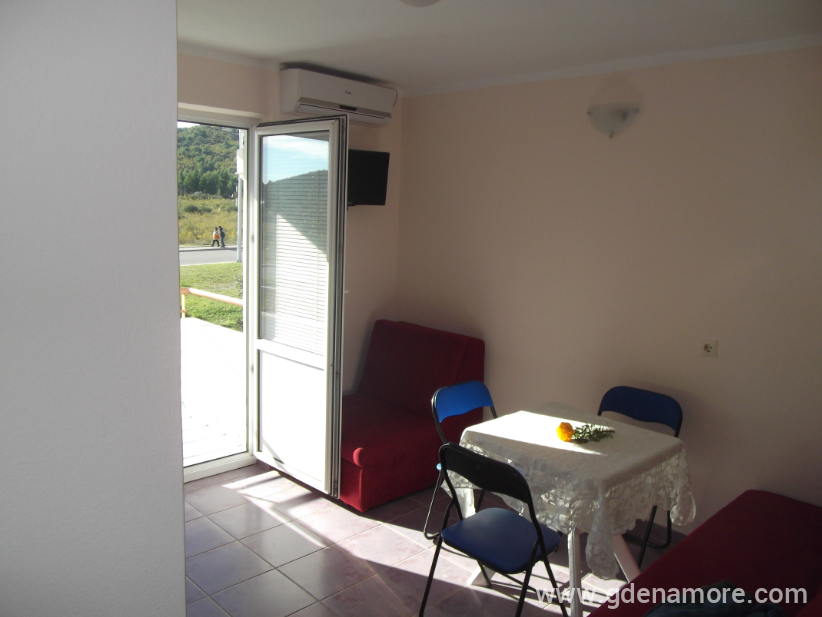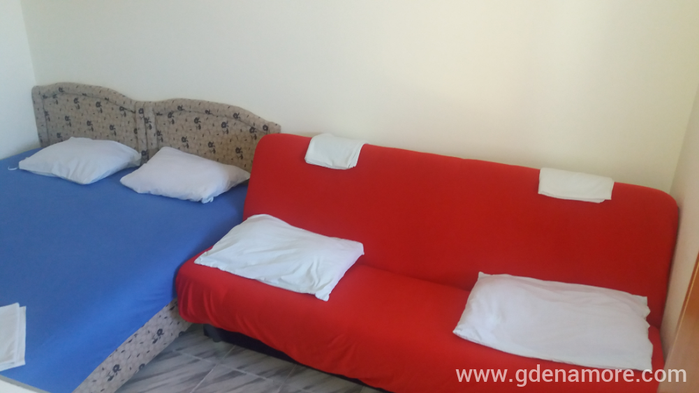 Soba posjeduje francuski lezaj i krevet na razvlacenje,kupatilo, WI-FI,veliku terasu i zajednicku kuhinju.Soba je u prizemlju.