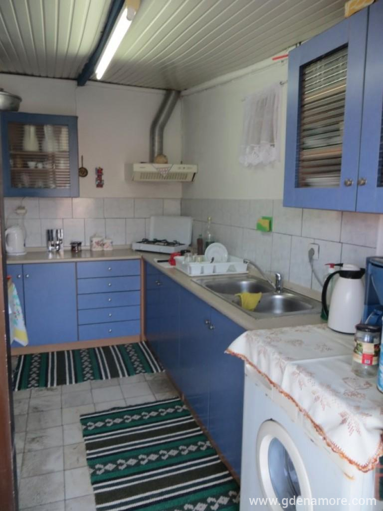 Na drugom spratu nalazi se veoma dobro opremljena zajednička kuhinja za pripremu obroka. Tu je i trpezarija za obedovanje sa stolovima i stolicama i fantastičnim direktnim pogledom na kristalno čisto i plavo more.