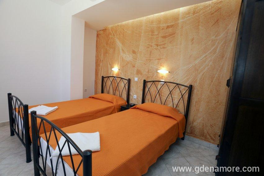 Apartman u prizemlju ima dve prostorije. U spavaćoj sobi se nalazi francuski ležaj, dok se u dnevnoj sobi nalazi kuhinja i sofa na rasklapanje. Površina apartmana je 40m2.