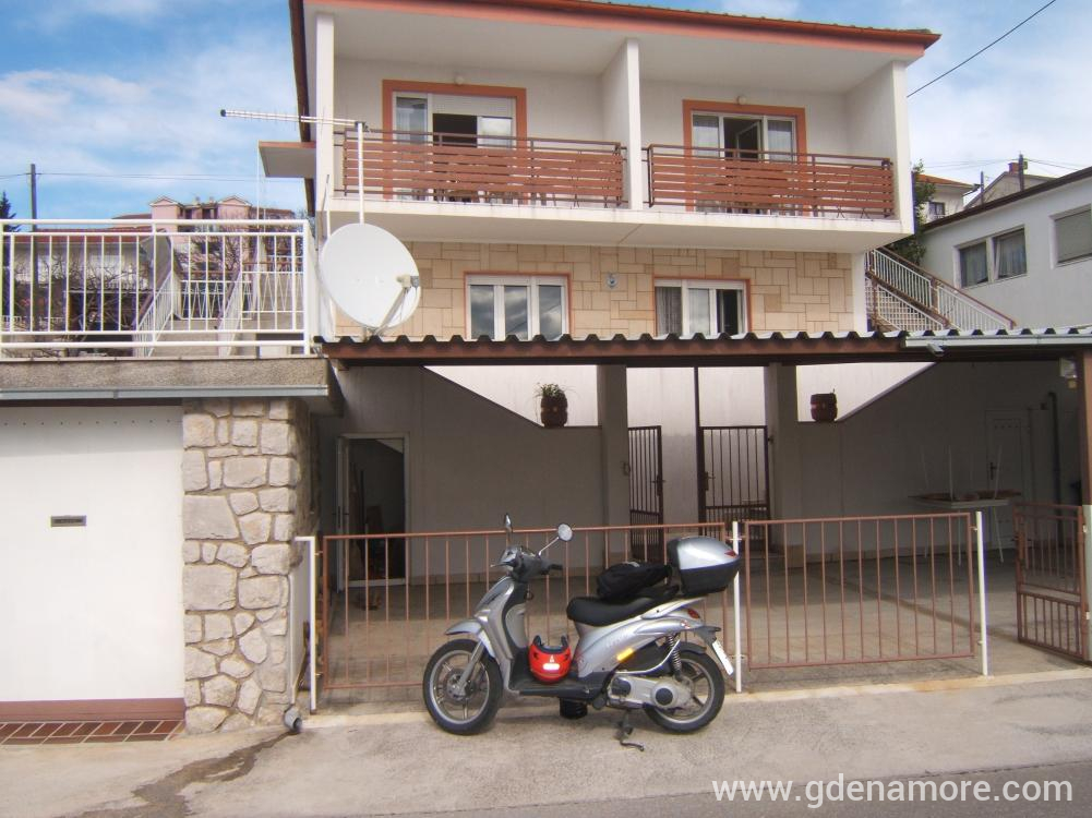 Apartmani se nalaze 200 m od plaze, 500 m od centra grada,trznice,ambulante, apoteke,autobusne stanice itd.U krugu 50 metara nalazi se pekara,restoran. 2 apartmana su na l.katu sa balkonom, 2 su u prizemlju sa velikim terasama. Parking je natkriven i osigurano mjesto za svaki apartman.Sve sobe imaju pogled na more. 3 apartmana su za 4 osobe sa 2 spavace sobe, kuhinjom,blagovaonom i kupatilo+WC, a jedan apartman ima 1 spavacu sobu,kuhinju kupatilo+WC,te jos jedan krevet u blagovaoni.Okolina je mirna i ugodna za odmor.