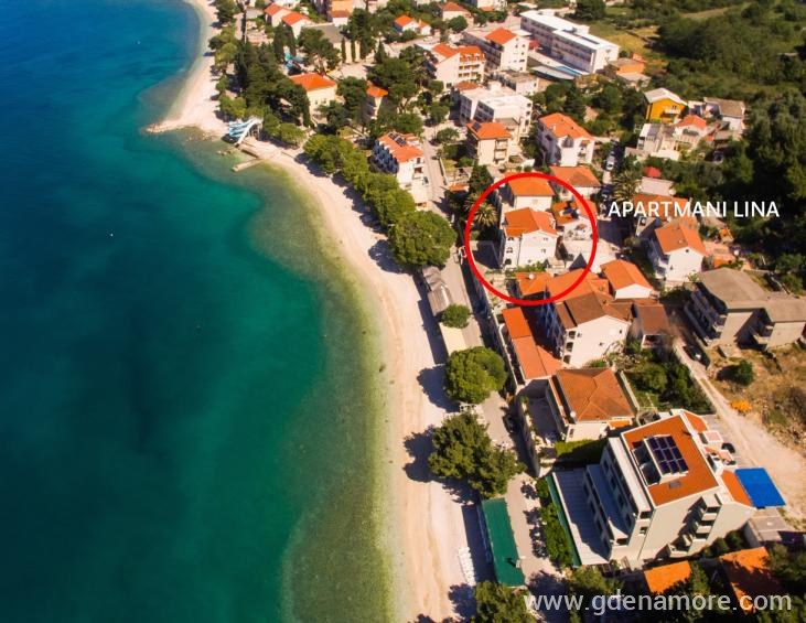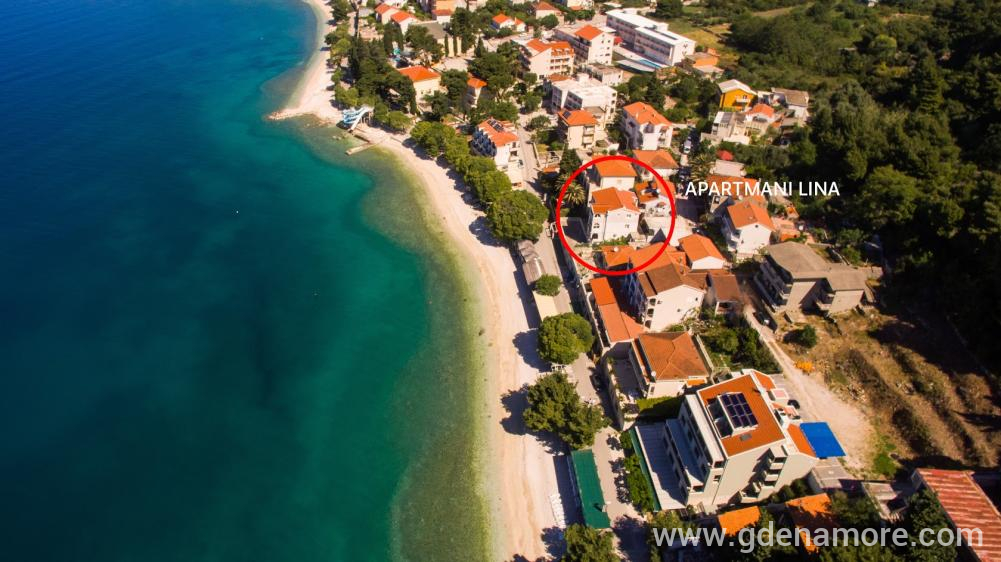 Apartmani Lina smješteni su uz samu plažu, na istočnom dijelu mjesta, odakle seže predivan pogled prema moru i otocima.