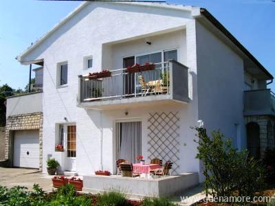 Posjedujem 2 apartmana jedan pored drugog, svaki sa dvije sobe,dobro opremljenom kuhinjom s mikrovalnom peći, dnevnim boravkom, kupaonom, satelitskom antenom,ispred svakog apartmana je terasa s kaminom. Parking se nalazi ispred kuće. Kuća je smještena 350 m od mora, a 150 m od centra. Ima krasni pogled na more i na stari dio grada. Ukupni kapacitet u oba apartmana je 8 +2 ležaja