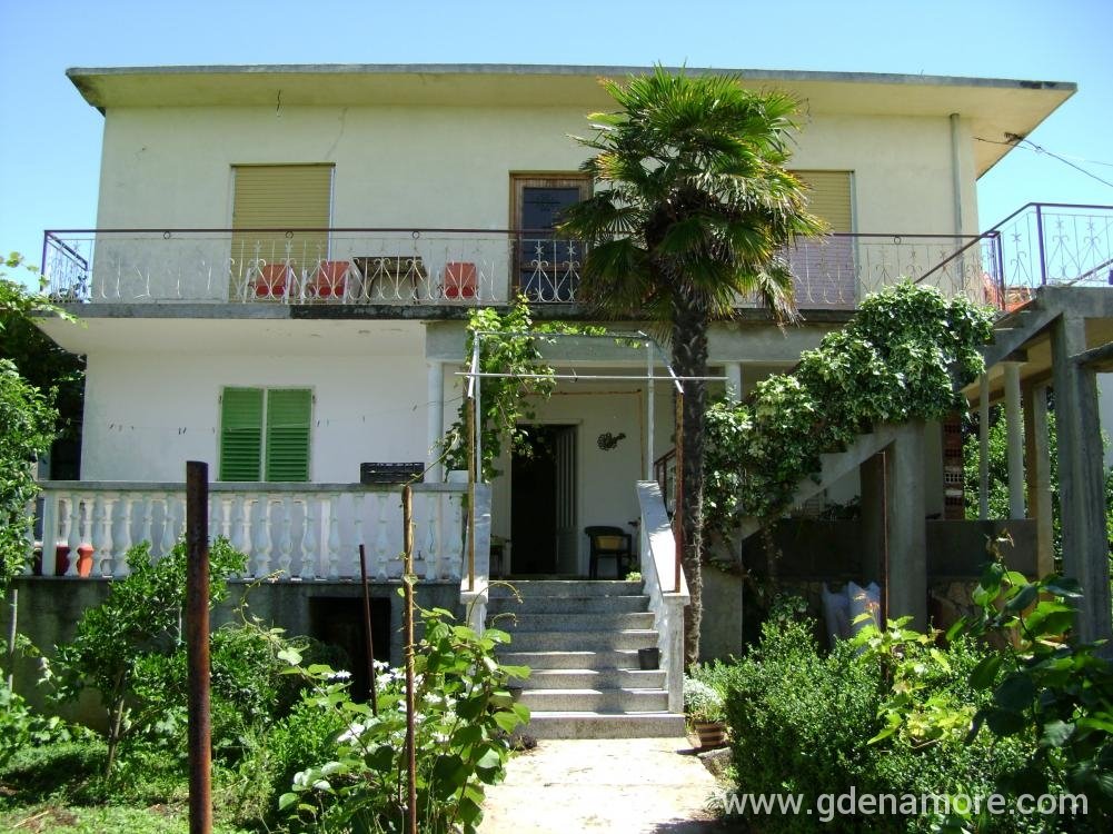 kompletan prvi sprat kuće (100m2) sa 4 dvokrevetne sobe (2 sa bračnim krevetom i 2 sa po 2 pojedinačna kreveta), 2 kupatila sa tuš kadom, veš mašina, 2 kuhinje (1 sa šporetom 3 plin, 1 struja i 1 sa 2 plinska), prva kuća do mora (20m do plaže), samo 28km od autoputa A1 (izlaz Posedarje), blizina kafića, restorana, picerije, marketa, povoljno domaći proizvodi (vino, rakija, maslinovo ulje), parking u dvorištu, velika terasa kraj mora, šljunčana plaža, toplo more.